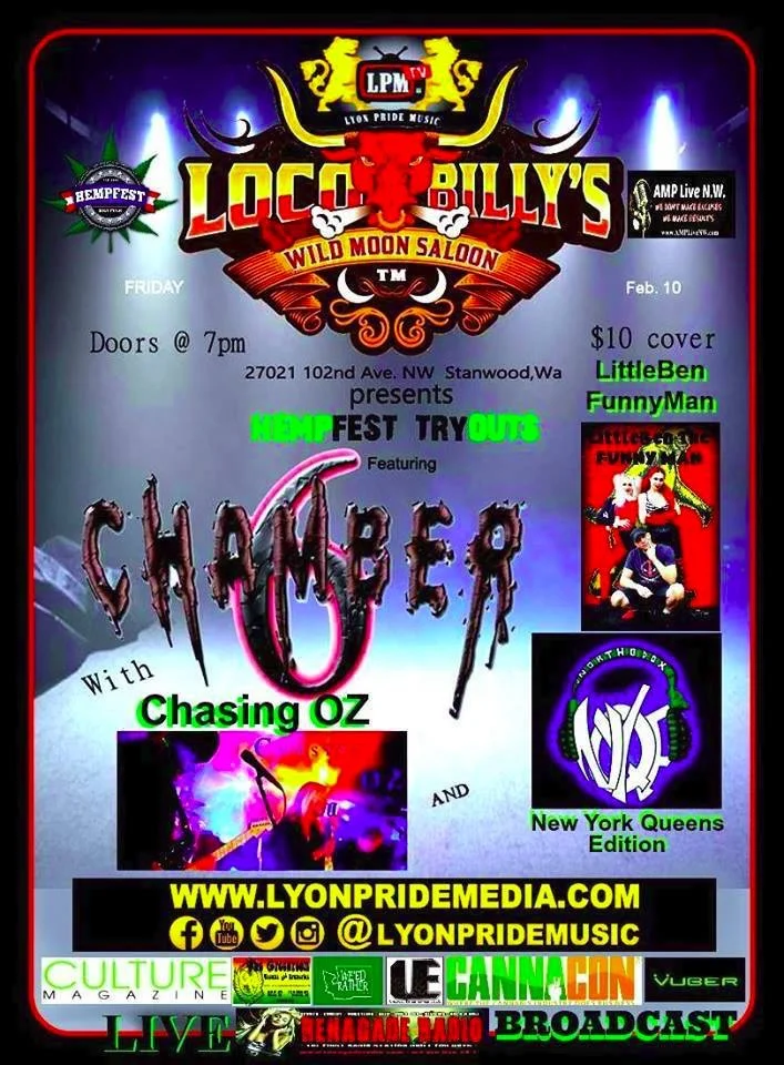 Hempfest Auditions Friday, February 10, 2017 8:00 PM 11:59 PM 20:00 23:59 Loco Billy's Wild Moon Saloon 27021 102nd Avenue Northwest Stanwood, WA, 98292 United States (map) Google Calendar ICS